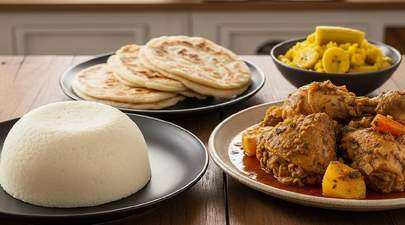 A generous portion of soft chapati served with savory goat meat