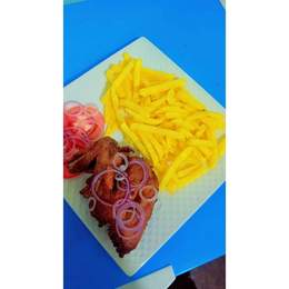 Wet fry chicken served with either chips ,rice,posho and sukuma, chapati and kacumbali