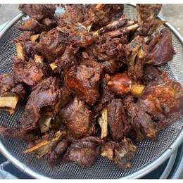 A quarter portion of dry-fried goat meat