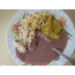 A traditional Ugandan breakfast dish made with steamed matooke fingers and well seasoned vegetables