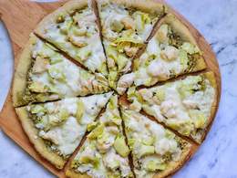 A gourmet mix of pesto sauce, chicken, onions, tomatoes, and feta toppings on a soft golden crust. Buy 1 medium get 1 free small margarita pizza