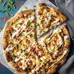 A bold mix of spicy BBQ sauce, smoked bacon, caramelized onions, seasoned pork, and pineapple