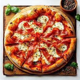 A soft crust made with smoky, spicy delight with bacon, onions, and chili toppings. Buy 1 medium get 1 free small margarita pizza