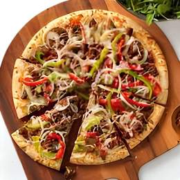 A meaty combo of BBQ sauce, beef, chicken, onions, and tomatoes toppings on a soft golden crust. Buy 1 medium get 1 free small margarita pizza