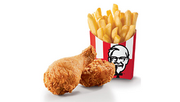 A box with 2 pieces of chicken, Regular Chips, Regular Coleslaw and 330ml soda
