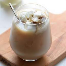 A simple Italian dessert or coffee drink made with a scoop of vanilla ice cream or gelato "drowned" with a shot of hot espresso.