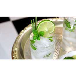 Refreshing non-alcoholic beverage with fresh lime juice, mint leaves, soda water, and sweetener, delivering zesty, cooling flavor with aromatic herbs