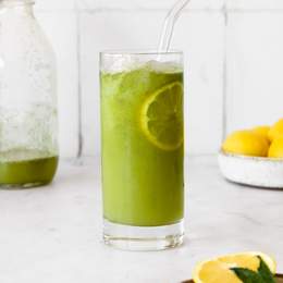 Refreshing lemonade infused with fresh mint leaves, creating cooling beverage with citrusy tang and aromatic herb flavor for hot weather