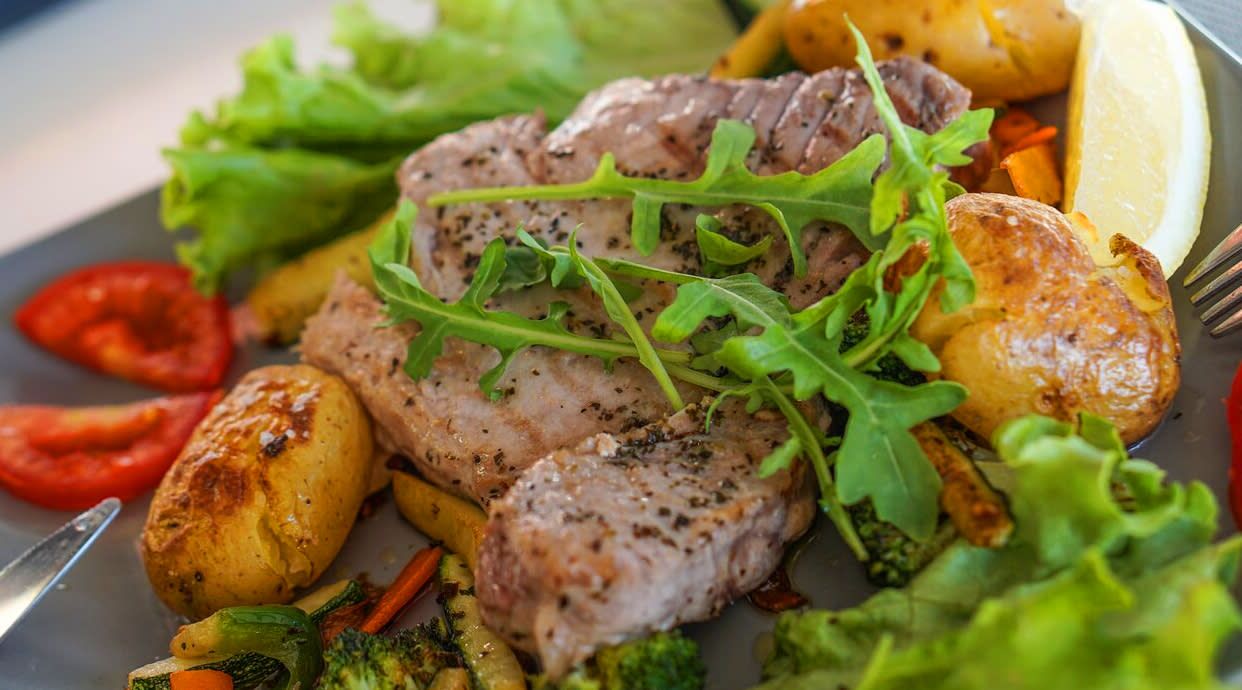 Salmão, atum, camarão, polvo, perca do nilo com vegetais grelhados e batata